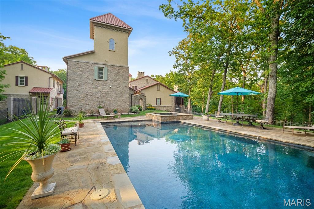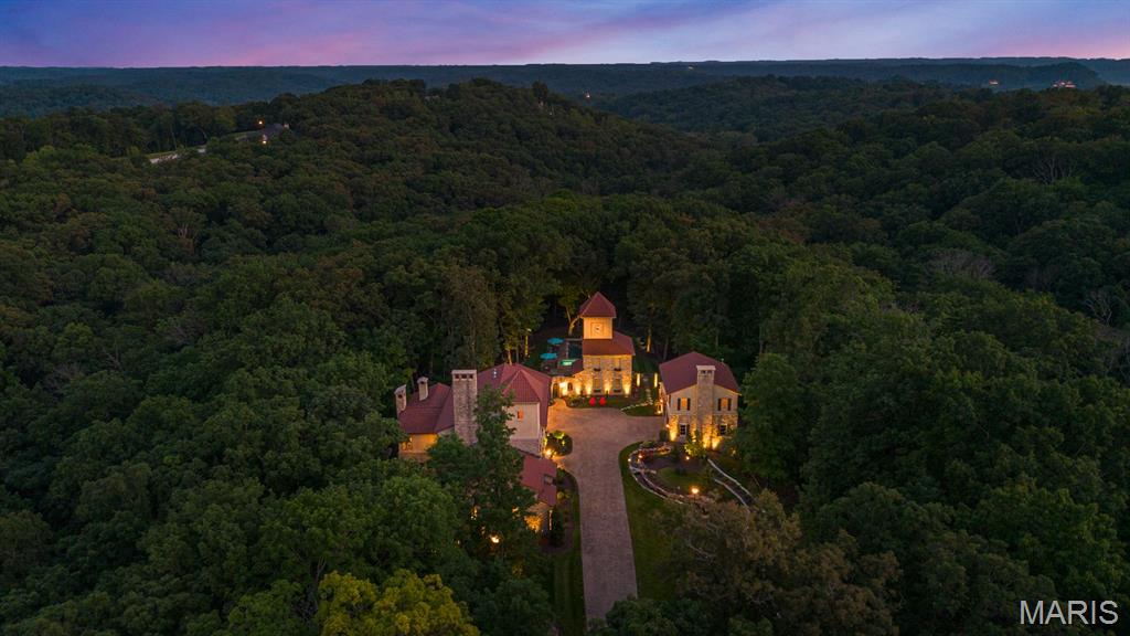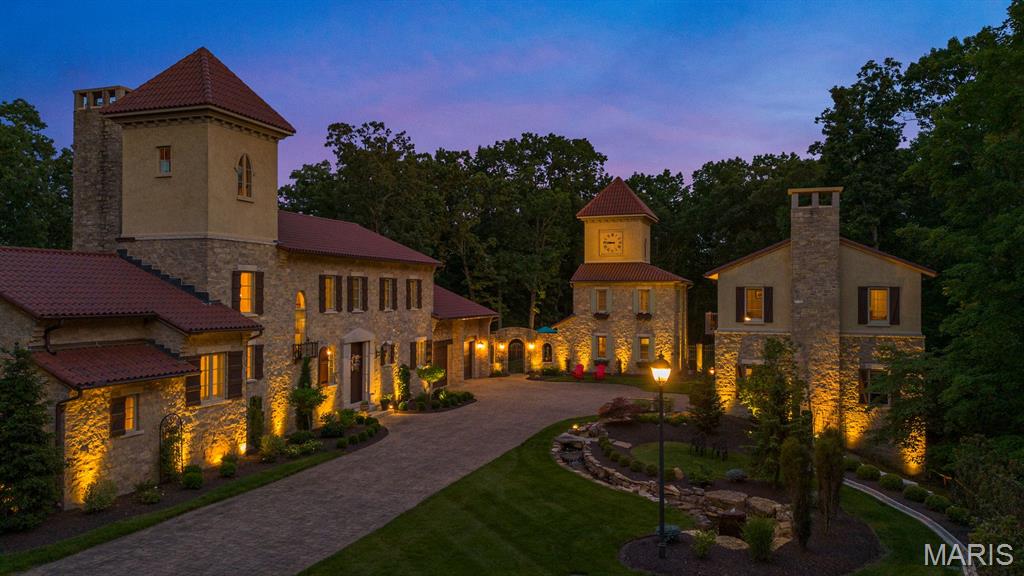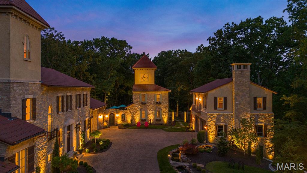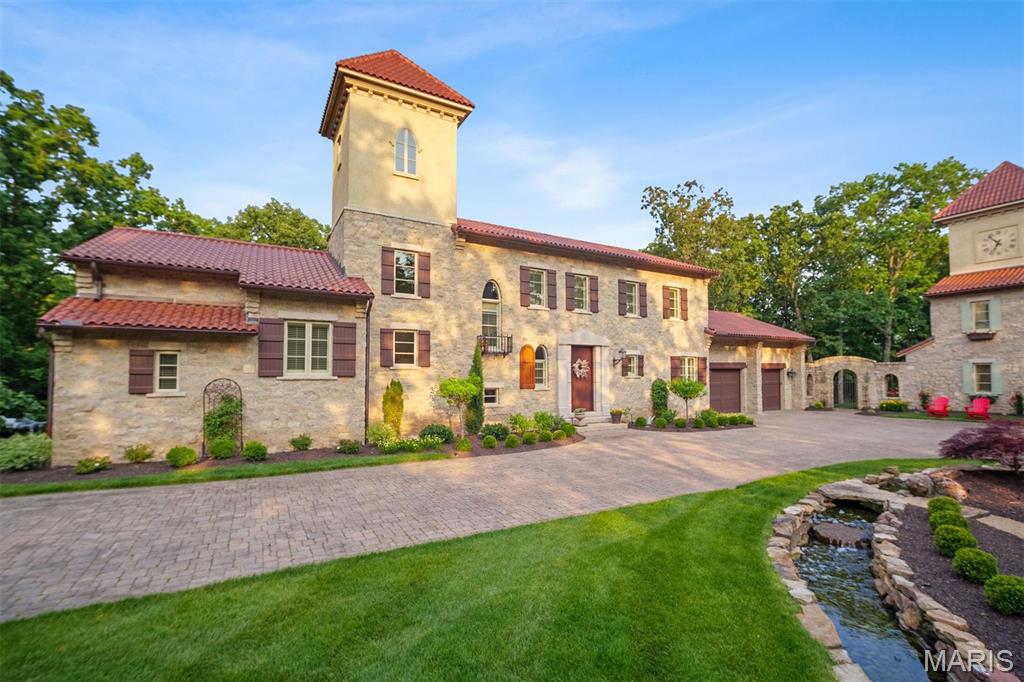 Centered on 13.4 acres and inspired by a tuscan village, this estate is a hidden masterwork. in one of St. Albans' most coveted enclaves. Designed to enchant, the residence offers 5 bedrooms, 6 full and 1 half baths, and 4 garage bays, effortlessly blending timeless Old World craftsmanship with modern indulgence. Dramatic stone walls, wide-plank and limestone floors, and custom alder cabinetry anchor the interiors with warmth and weight. The primary suite is a private retreat with a vaulted ceiling, cove lighting, a 20' x 10' dressing room, and a spa-caliber shower. A whimsical clock tower serves as a pub and bath for the Mediterranean-style heated saltwater pool and spa, while the carriage house provides a fully appointed guest apartment. Whether taking in treetop views from the third-floor observatory or experiencing the drama of the estate's signature water feature, this home offers a living experience where comfort, character, and architecture converge effortlessly.
