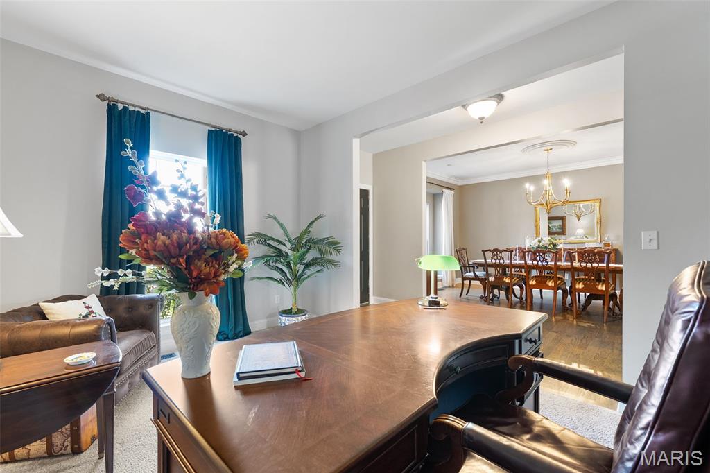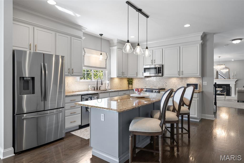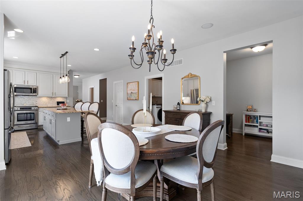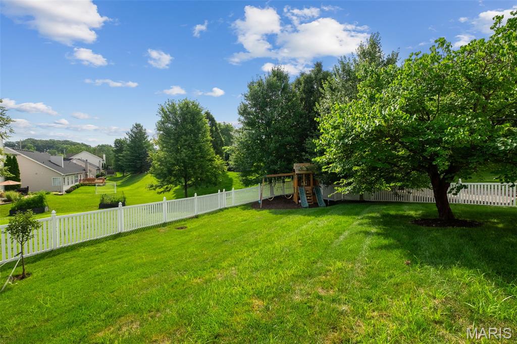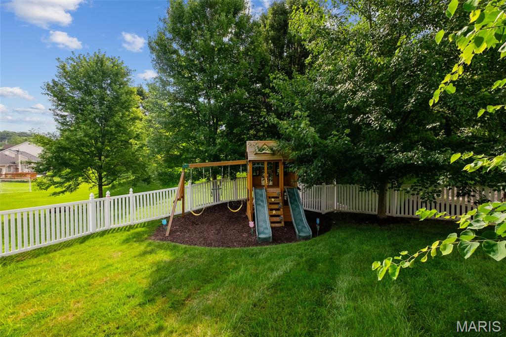 Immaculate home in Rockwood SD with easy access to 141, 44 & 270! This home is full of designer touches--job-finished hardwood floors, custom shutters, gas fireplace with cast surround, recessed lighting, 9' ceilings, crown molding, and shiplap accents. The kitchen features 42" white cabinets with crown, granite counters, marble backsplash, gas range, center island with breakfast bar, and connects to a breakfast room, office, mudroom & oversized pantry. Upstairs offers 4 spacious bedrooms, each with generous custom walk-in closets. The owner's suite includes dual vanities, jetted tub, separate shower & private commode. Finished lower level has luxury vinyl floors, bar, family room, game area & tons of storage. Additional highlights: 3-car garage with carriage-style doors, 75-gal water heater, newer dual HVAC systems with electronic filters & humidifiers, Nest thermostat, alarm & sprinkler systems, and a large fenced yard perfect for entertaining or a future pool! New roof. Interior photos by 8/6. Showings begin on Friday 8/8. Don't miss your chance to call this one HOME.