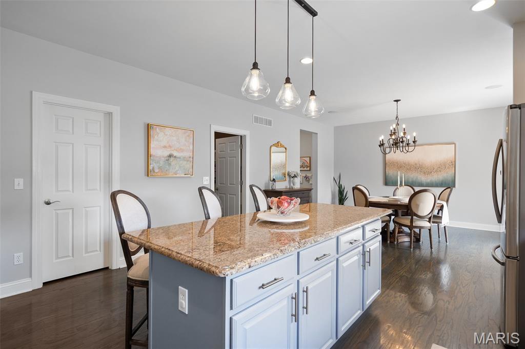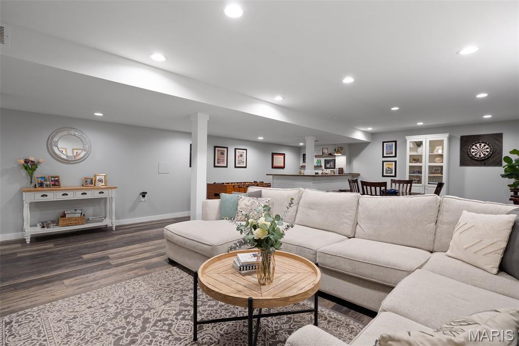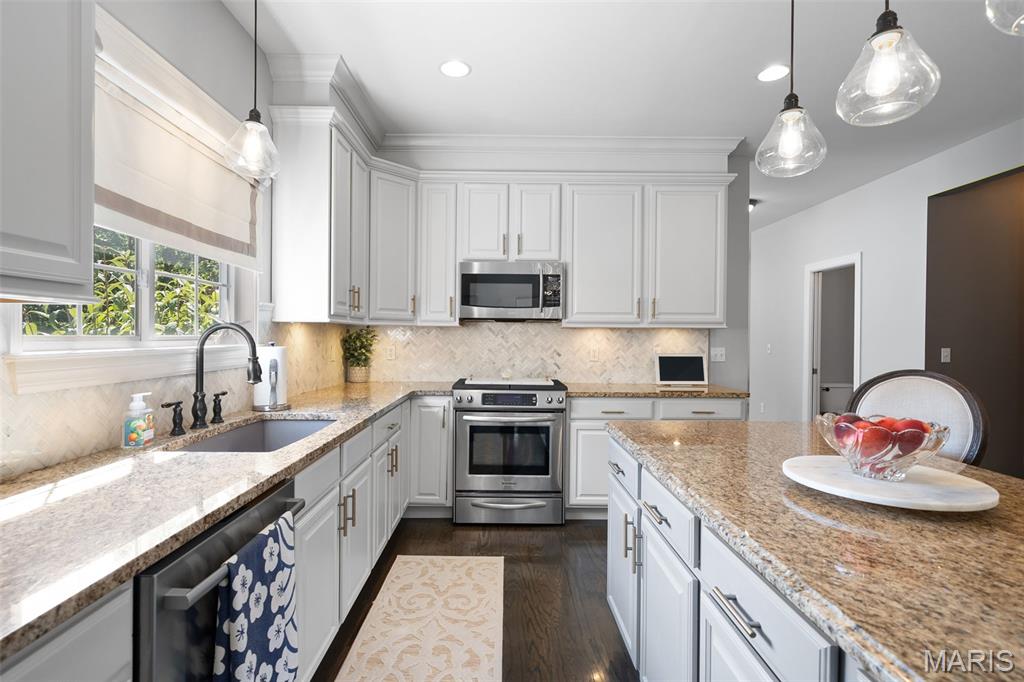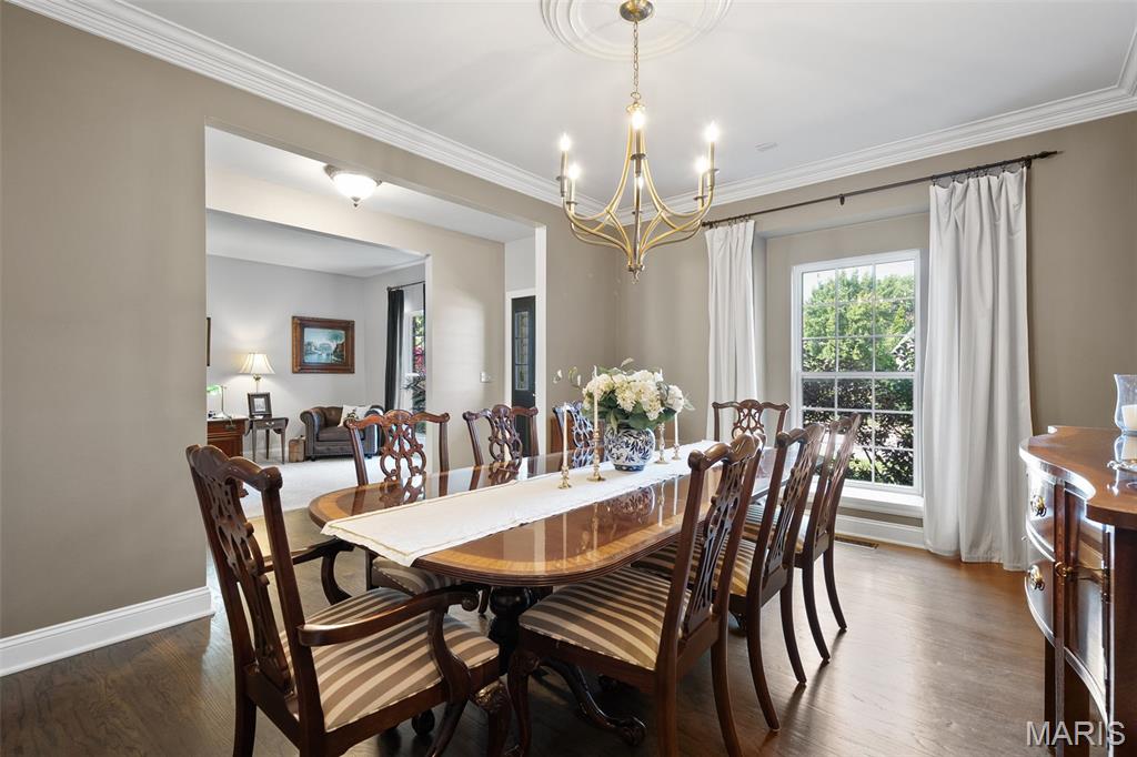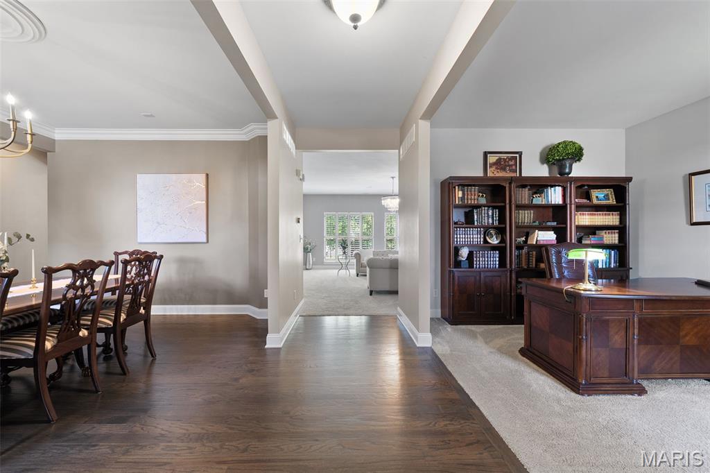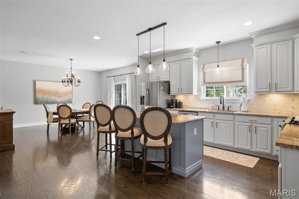 Immaculate home in Rockwood SD with easy access to 141, 44 & 270! This home is full of designer touches--job-finished hardwood floors, custom shutters, gas fireplace with cast surround, recessed lighting, 9' ceilings, crown molding, and shiplap accents. The kitchen features 42" white cabinets with crown, granite counters, marble backsplash, gas range, center island with breakfast bar, and connects to a breakfast room, office, mudroom & oversized pantry. Upstairs offers 4 spacious bedrooms, each with generous custom walk-in closets. The owner's suite includes dual vanities, jetted tub, separate shower & private commode. Finished lower level has luxury vinyl floors, bar, family room, game area & tons of storage. Additional highlights: 3-car garage with carriage-style doors, 75-gal water heater, newer dual HVAC systems with electronic filters & humidifiers, Nest thermostat, alarm & sprinkler systems, and a large fenced yard perfect for entertaining or a future pool! New roof. Interior photos by 8/6. Showings begin on Friday 8/8. Don't miss your chance to call this one HOME.