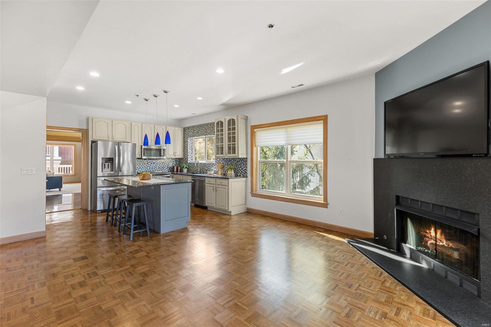 Spacious, luxurious 2 bed/2 bath penthouse unit, STEPS from Clayton. This fabulous 2 story condo was built for the original project developer and features a 2 story great room, 2 balconies, 2 fireplaces, floating staircase, beams, natural wood 6 panel doors, hearth room and possibility for 1st or 2nd floor master bedroom. Vaulted great room with gas fireplace, built-ins & covered balcony access. Gorgeous dining room leads to the eat-in kitchen complete with stainless steel appliances and granite countertops. Hearth room w/ fireplace leads to a light-filled bedroom or office. Take the gorgeous custom stairs to the 2nd level and find another primary suite, complete w/ custom closets. Primary bath features double vanity, walk in shower & separate tub.