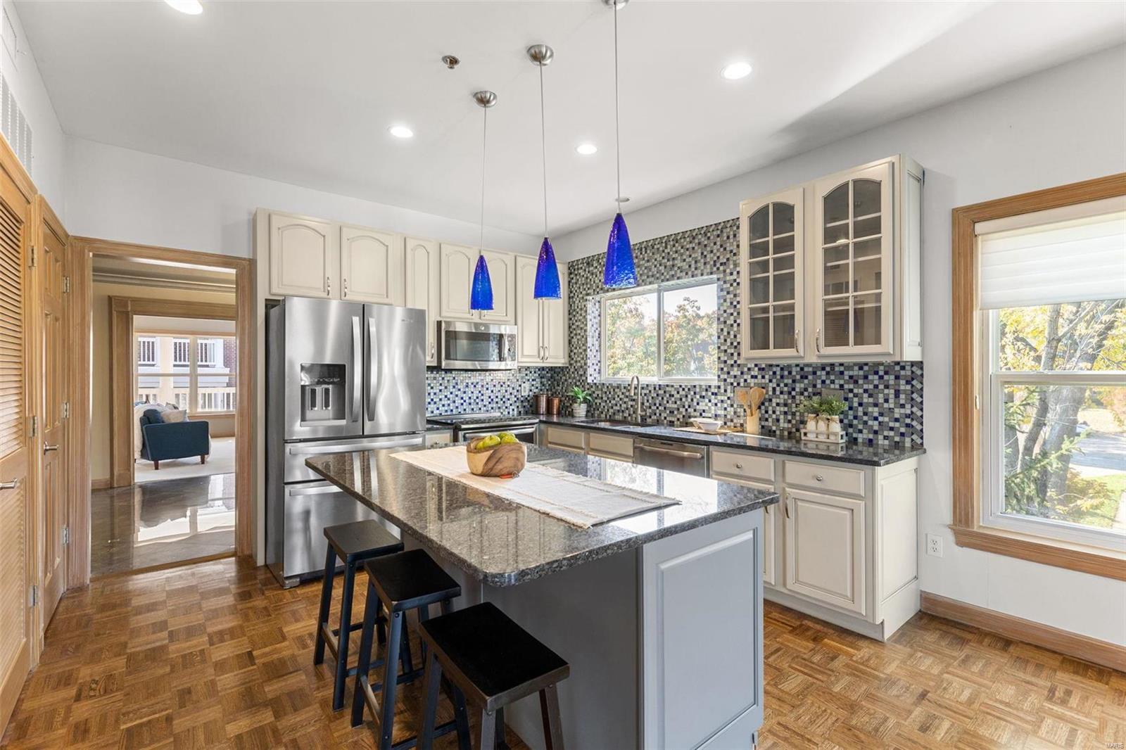 Secure building access and elevator. 2 assigned parking spaces in a security garage for your convenience. Additional storage in the LL. Monthly fee covers trash, water, sewer, snow removal, some insurance and maintenance for common areas. Location: End Unit, Upper Level