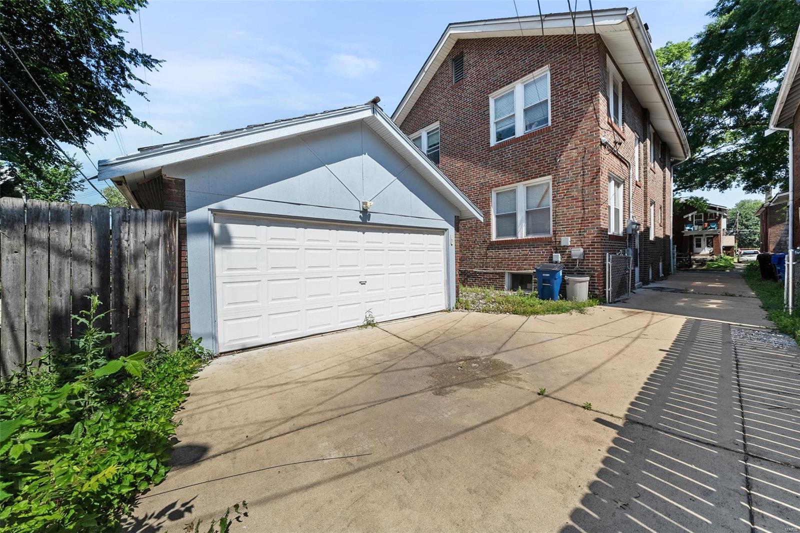 The left side features 2 bedrooms and one full bath, and the right side unit has 3 bedrooms and a full bath. 3 bed, 1 bath unit is leased for 1500/mo through 7/2025. Shared basement with laundry hookups. 2-car detached garage located behind the building.