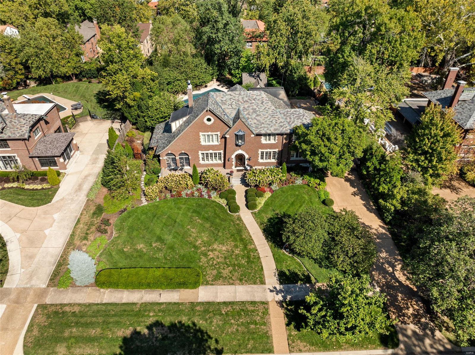 "Once in a lifetime". This elegant Tutor is situated on University City's premier block, Westmoreland, and steps from Clayton. This 5 bed, 6 bath is comprised of multiple living & entertaining spaces inside & outdoors. Thoughtfully renovated by the present owners over 30 years to provide modern amenities while preserving the architecture and character of the original home. Hardwoods throughout, grand fireplace in LR, screened in porch, gorgeous stair, separate dining, additional family room. Kitchen (2010), mudroom, powder room, back stair, and large den/study complete the main level. Large primary suite w enormous dressing room, 2 large beds w WICs and JnJ bath. Smaller en suite bedroom.Vaulted 3rd level w/ full bath provides stunning views. Finished LL w/ prep kitchen, rec space, half bath, storage. Terraced back patios, outdoor fireplace, pool, spa, and pool house. Professionally designed and maintained grounds with full irrigation. Oversized 2-car garage. Security system. Gated.