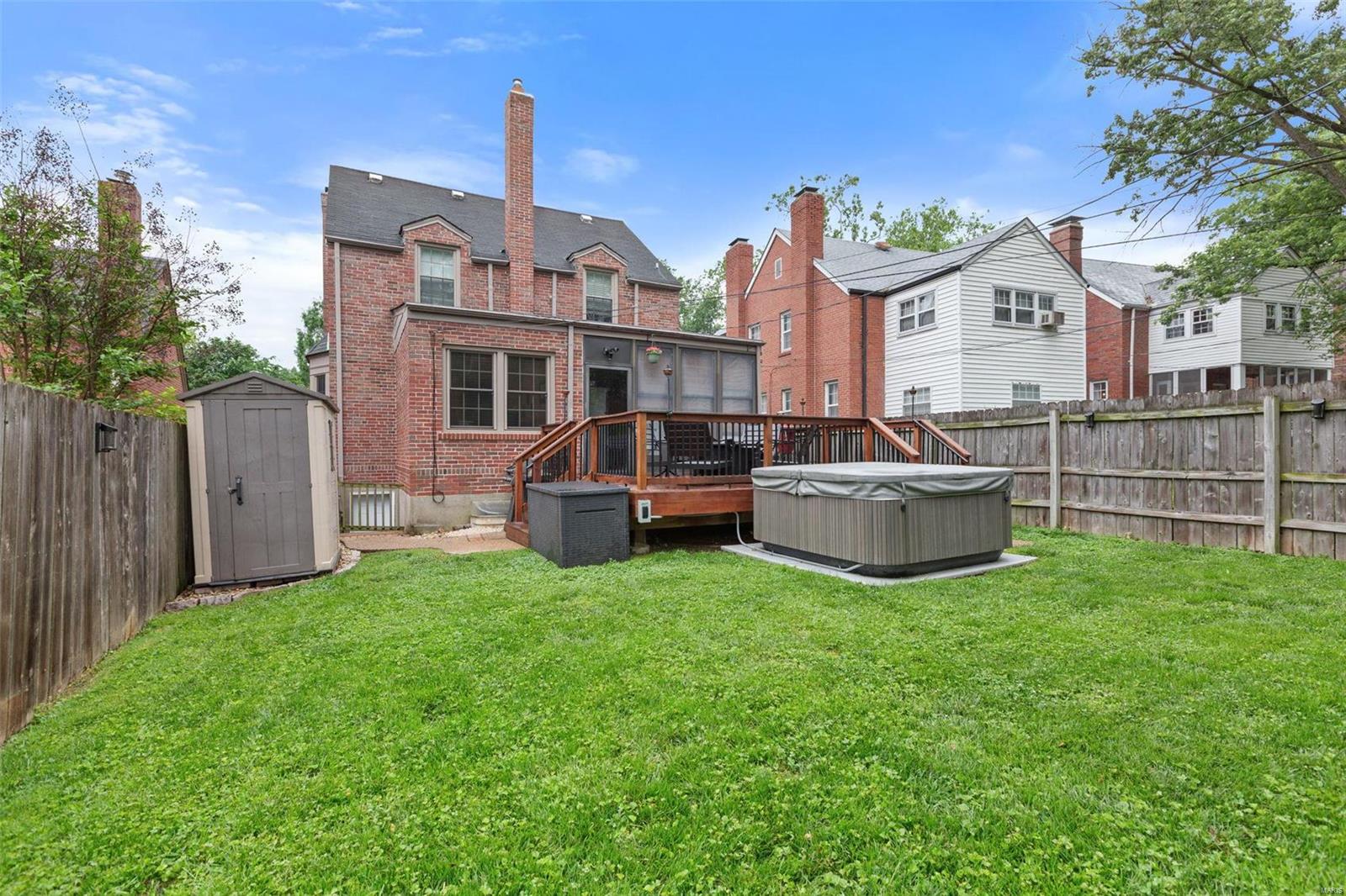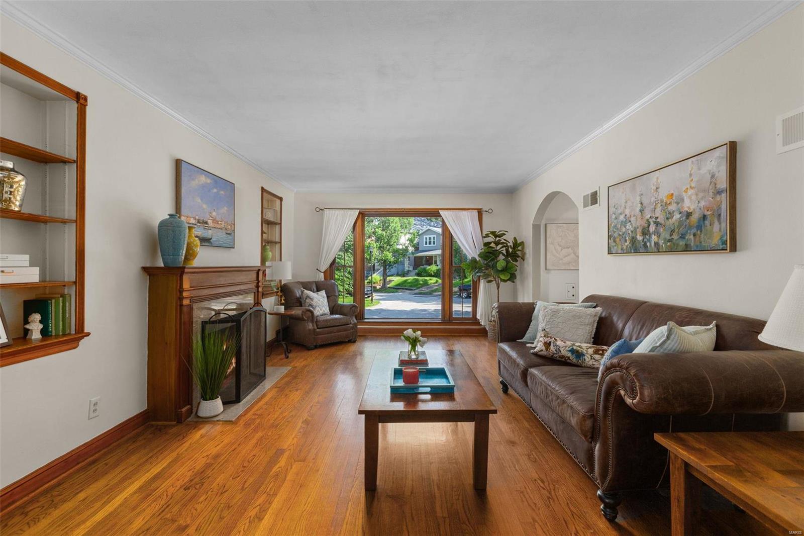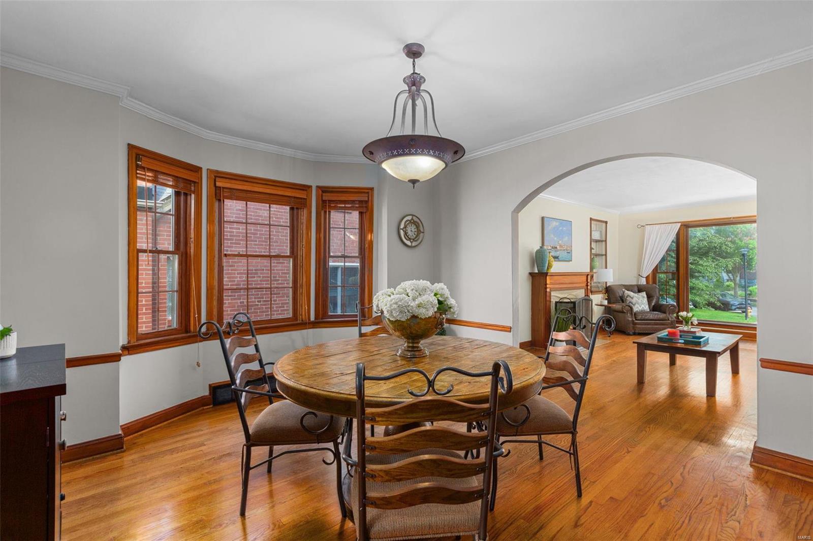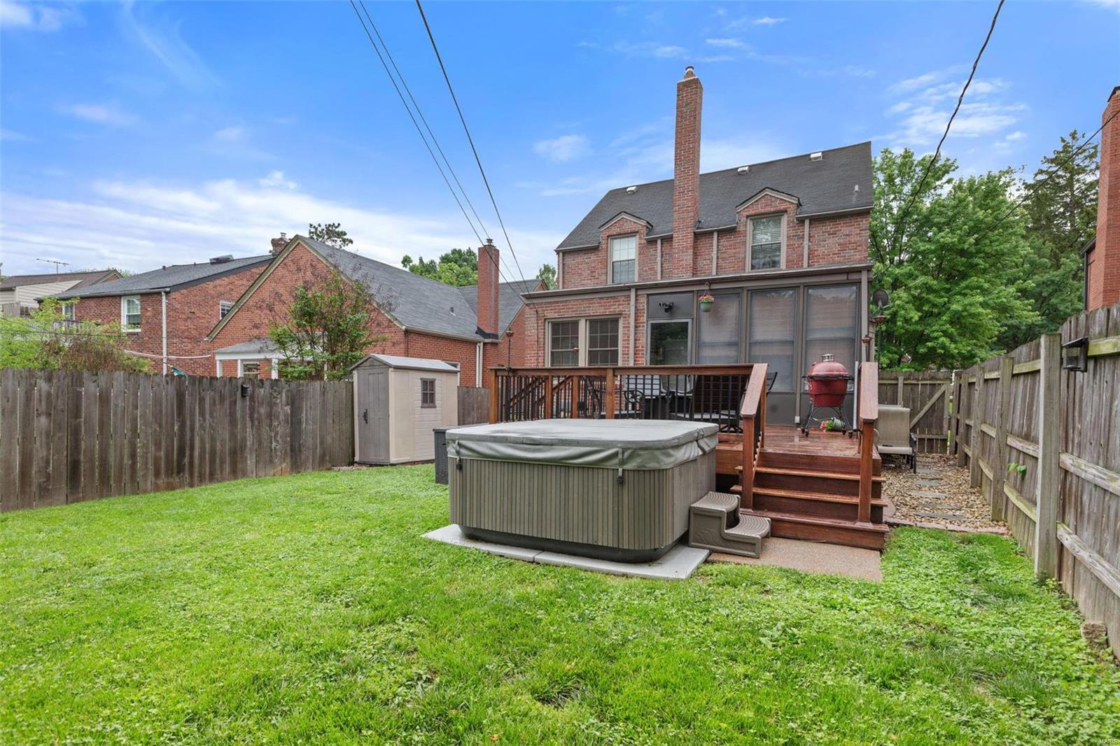 Meticulously-maintained all brick 2-story home steps from Mooney Park features gleaming hardwood floors, 2 bay windows, crown-molding and gorgeous archways. The home has a professionally remodeled kitchen w granite countertops & SS appliances. Large family room features wood-burning fireplace, built in shelving & large picture window. Separate dining room w/ bay window & 12 x 7 bonus room- great office or playroom. Both bathrooms have been professionally renovated w custom cabinetry and granite. Lovely 3 season room leads to large tiger wood deck (12' x 14' ) & overlooks fully fenced yard, complete w spa. 2 outdoor gas hookups for grilling & fire pit needs. All 3 beds are sizeable. Primary includes 2 closets. Attached garage leads to full basement w walkout. beautiful aggregate front steps and porch make this a low-maintenance turn-key home! Fabulous location- minutes from Downtown Clayton & Delmar Loop. Windows ('16 & '18), water heater ('23), Deck ('20), Sump pump/drain tile ('15) Additional Rooms: Sun Room