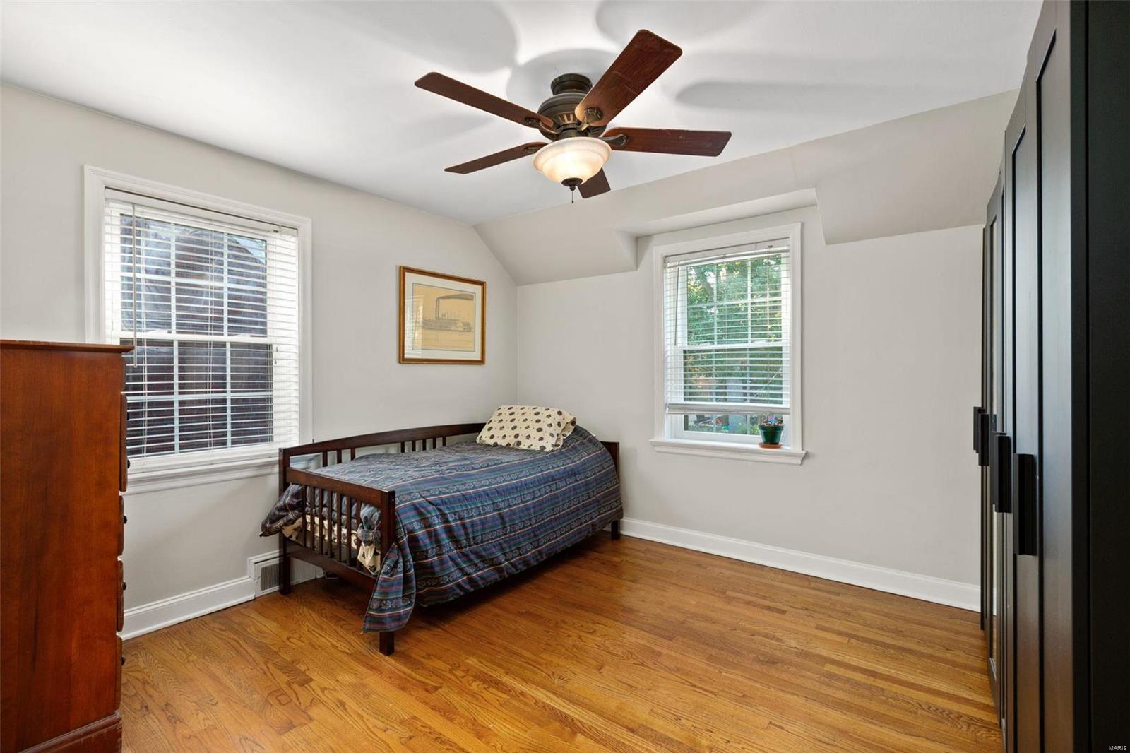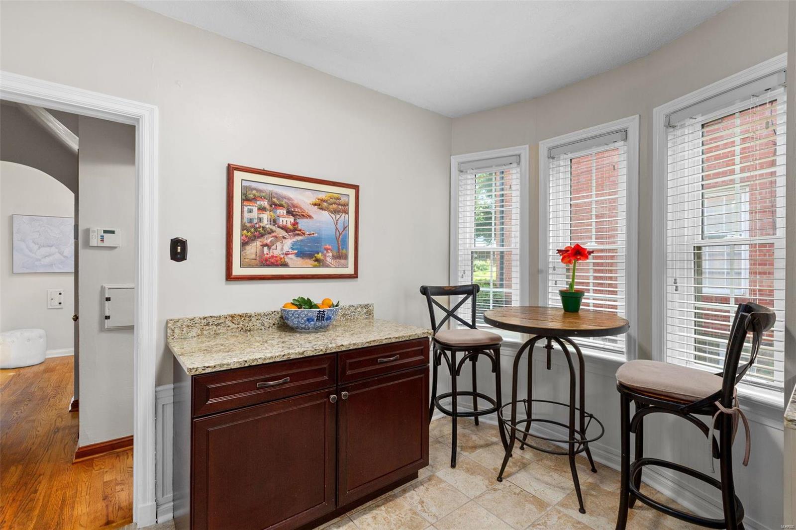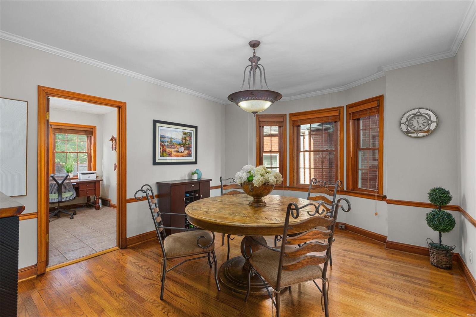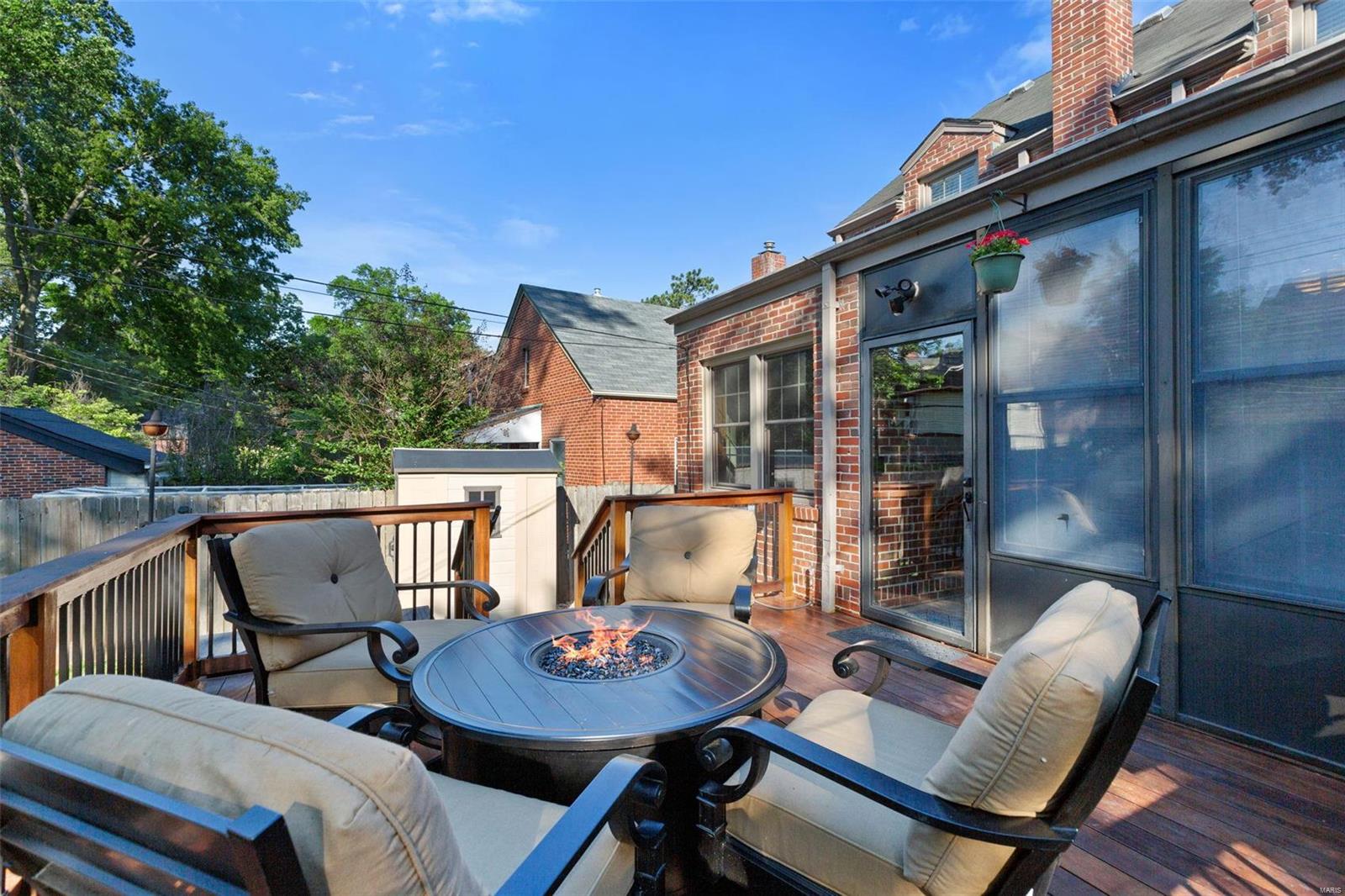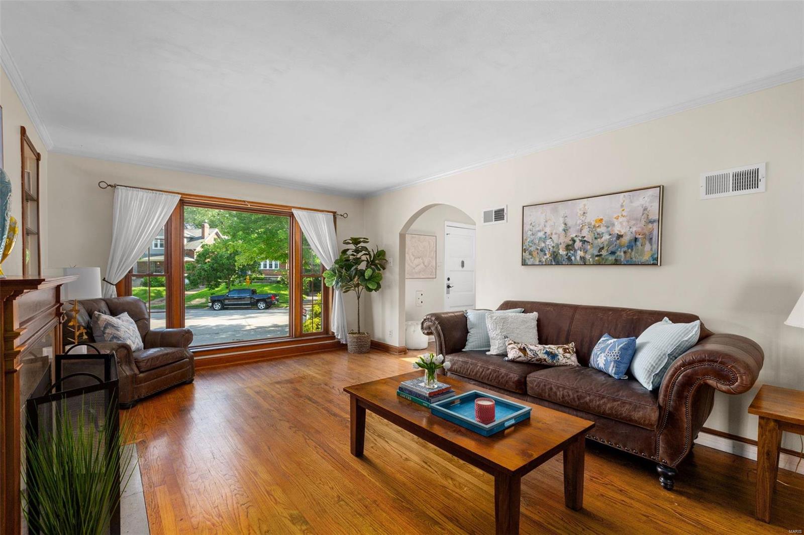 Meticulously-maintained all brick 2-story home steps from Mooney Park features gleaming hardwood floors, 2 bay windows, crown-molding and gorgeous archways. The home has a professionally remodeled kitchen w granite countertops & SS appliances. Large family room features wood-burning fireplace, built in shelving & large picture window. Separate dining room w/ bay window & 12 x 7 bonus room- great office or playroom. Both bathrooms have been professionally renovated w custom cabinetry and granite. Lovely 3 season room leads to large tiger wood deck (12' x 14' ) & overlooks fully fenced yard, complete w spa. 2 outdoor gas hookups for grilling & fire pit needs. All 3 beds are sizeable. Primary includes 2 closets. Attached garage leads to full basement w walkout. beautiful aggregate front steps and porch make this a low-maintenance turn-key home! Fabulous location- minutes from Downtown Clayton & Delmar Loop. Windows ('16 & '18), water heater ('23), Deck ('20), Sump pump/drain tile ('15) Additional Rooms: Sun Room