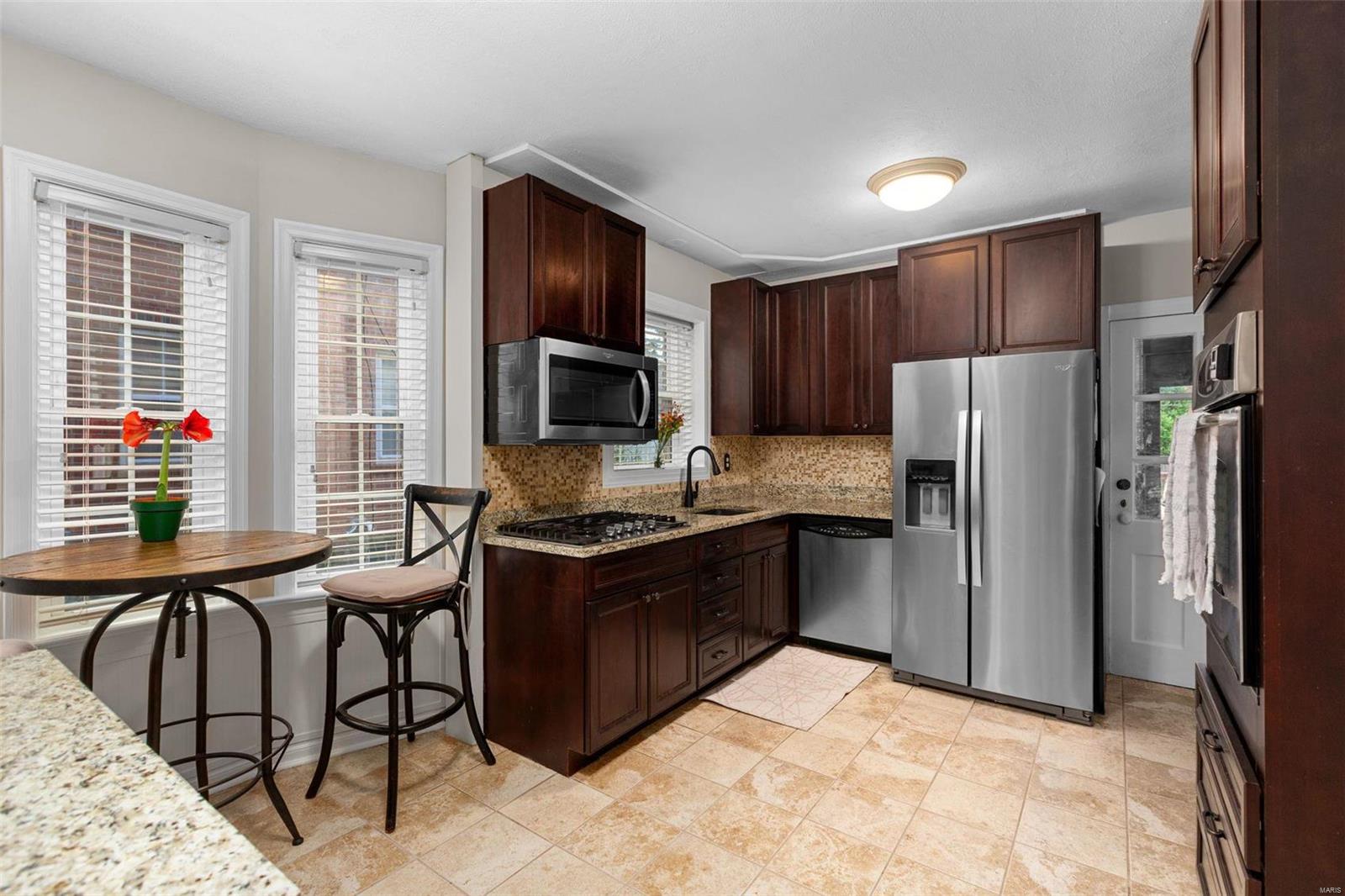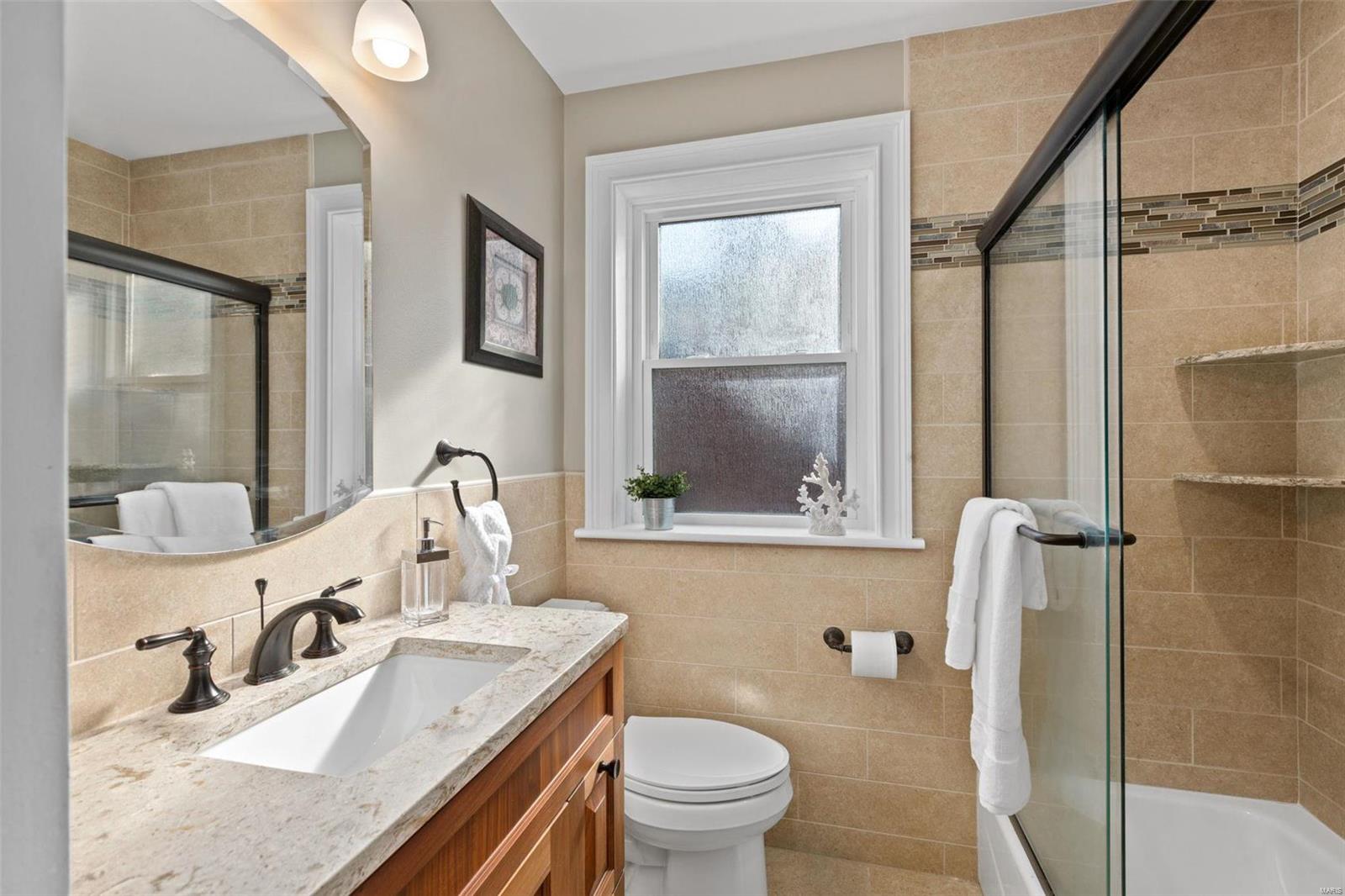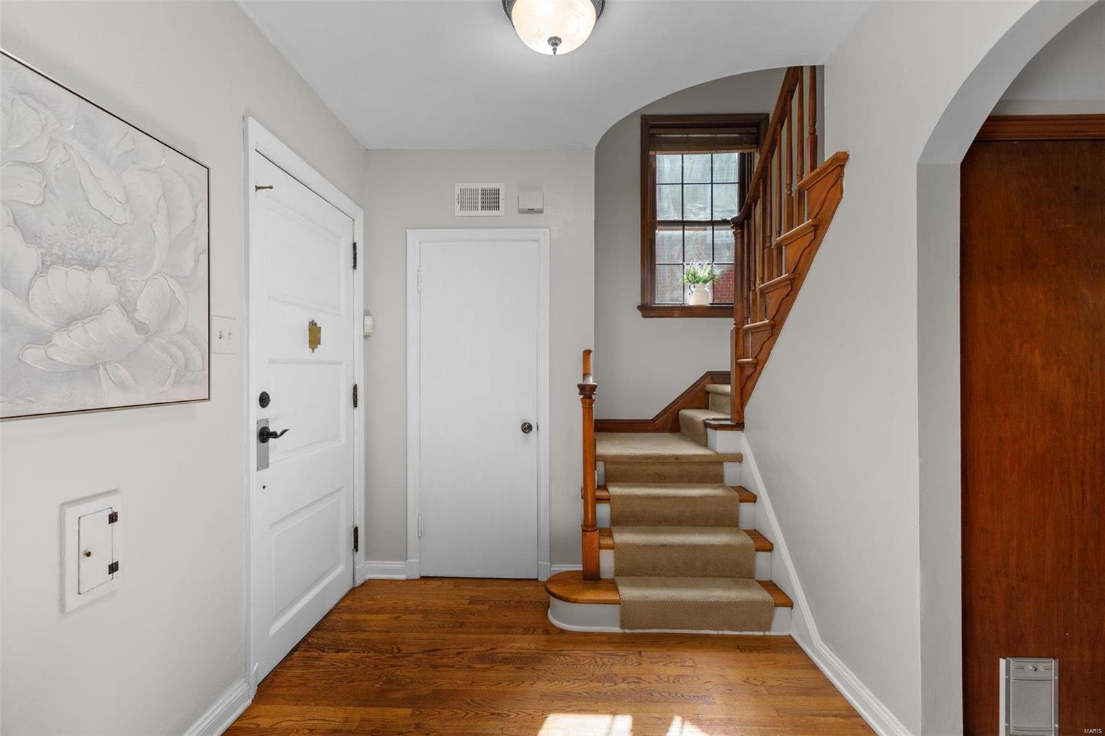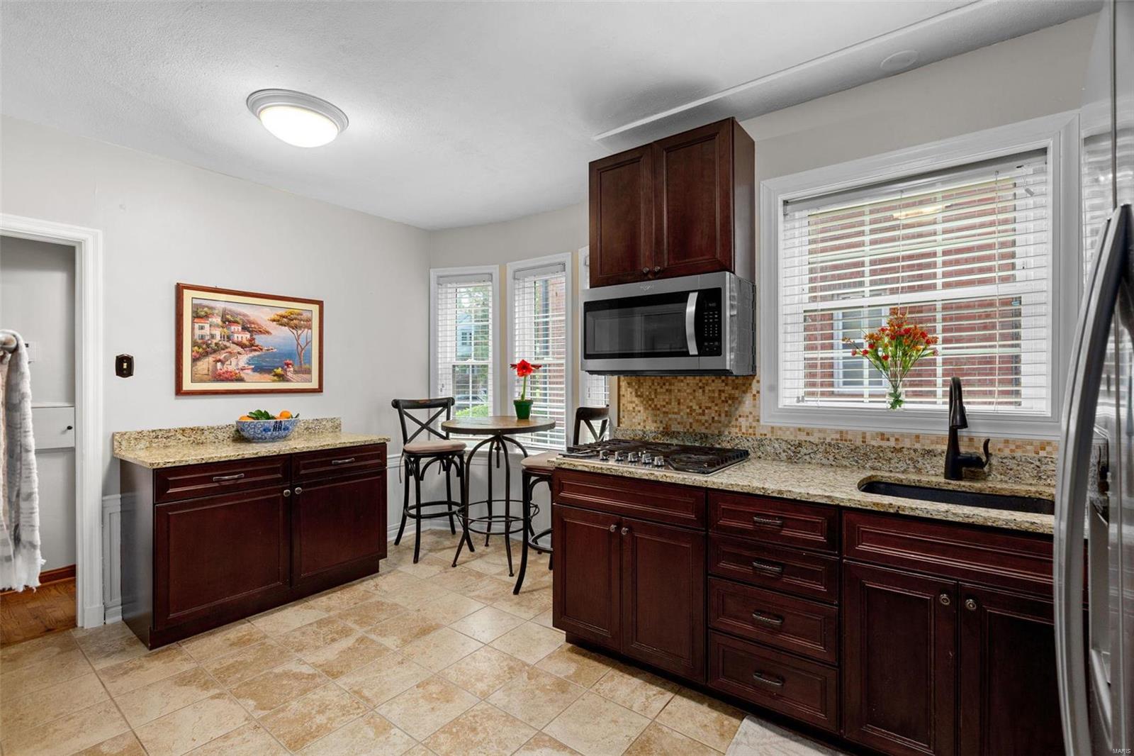 Meticulously-maintained all brick 2-story home steps from Mooney Park features gleaming hardwood floors, 2 bay windows, crown-molding and gorgeous archways. The home has a professionally remodeled kitchen w granite countertops & SS appliances. Large family room features wood-burning fireplace, built in shelving & large picture window. Separate dining room w/ bay window & 12 x 7 bonus room- great office or playroom. Both bathrooms have been professionally renovated w custom cabinetry and granite. Lovely 3 season room leads to large tiger wood deck (12' x 14' ) & overlooks fully fenced yard, complete w spa. 2 outdoor gas hookups for grilling & fire pit needs. All 3 beds are sizeable. Primary includes 2 closets. Attached garage leads to full basement w walkout. beautiful aggregate front steps and porch make this a low-maintenance turn-key home! Fabulous location- minutes from Downtown Clayton & Delmar Loop. Windows ('16 & '18), water heater ('23), Deck ('20), Sump pump/drain tile ('15) Additional Rooms: Sun Room