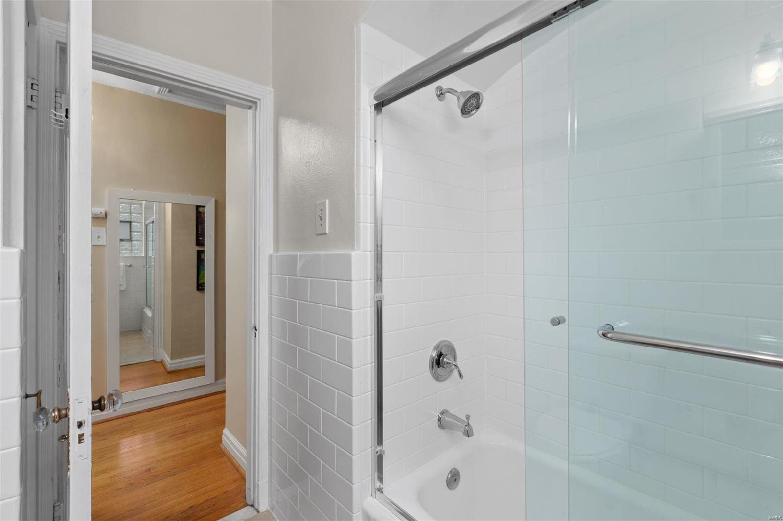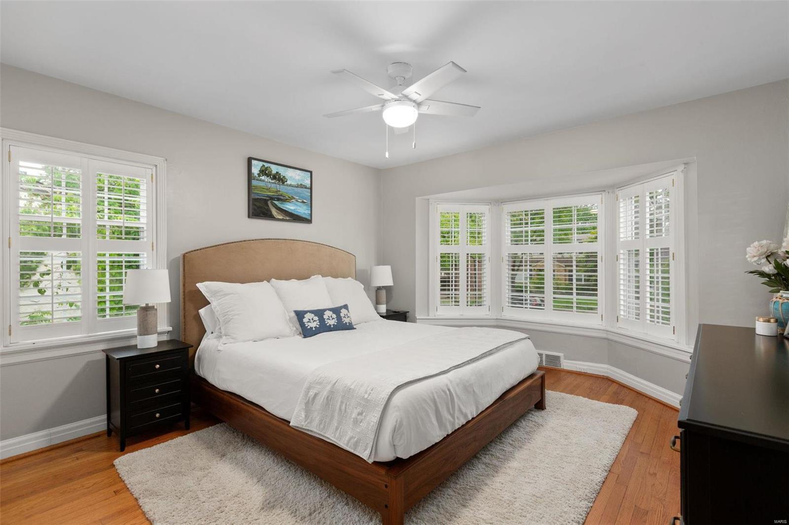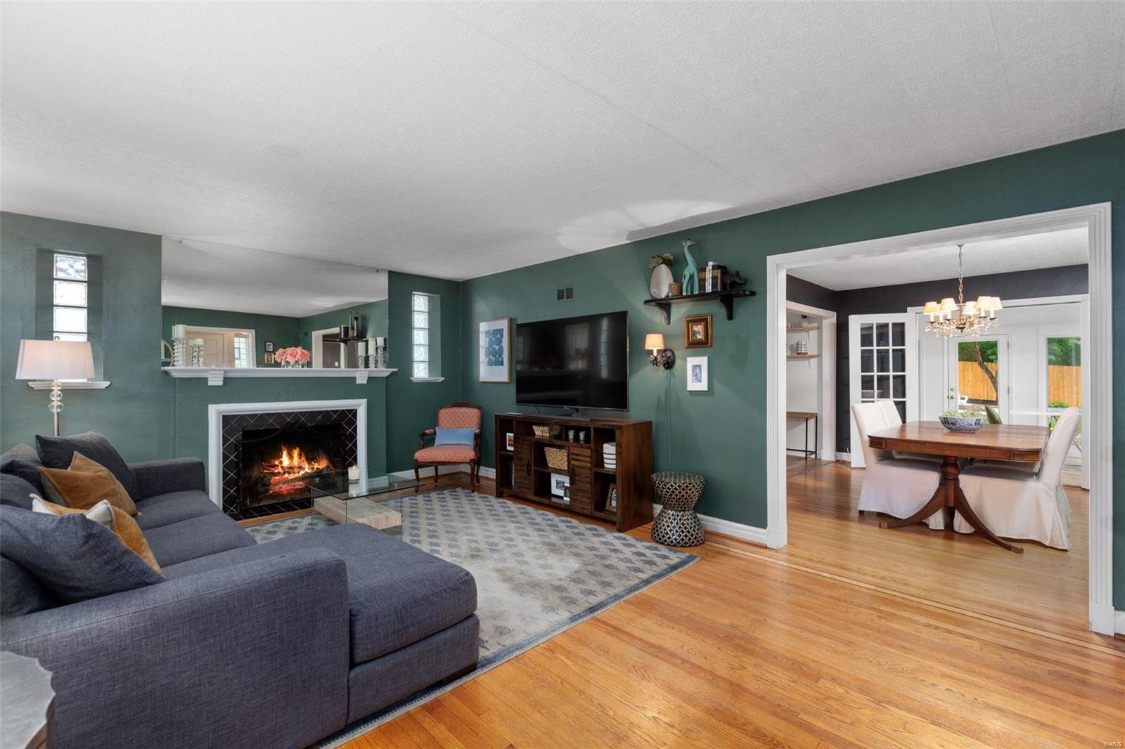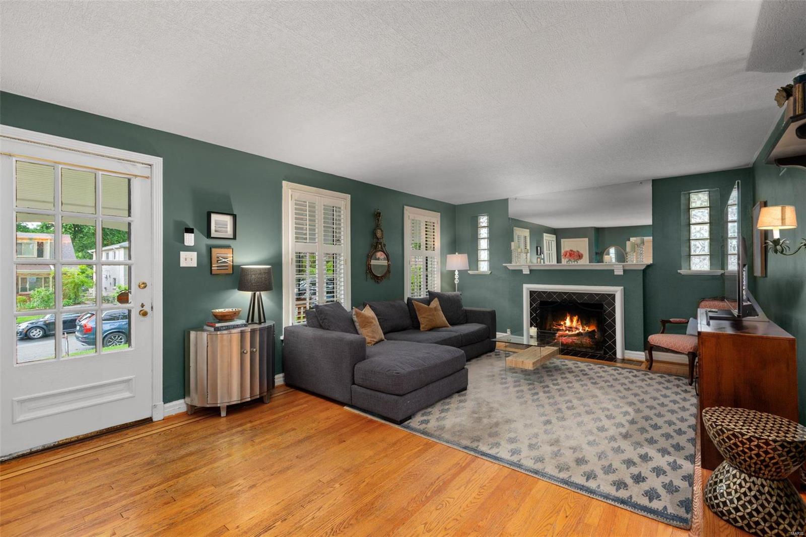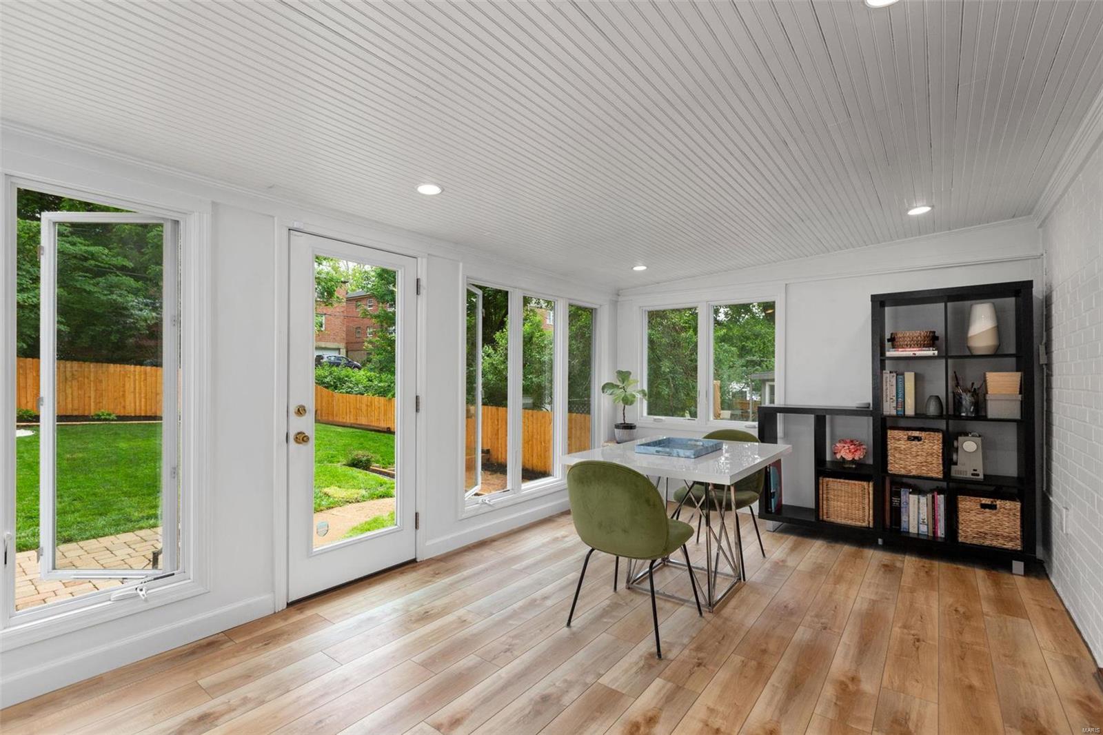 You had me at hello! This gorgeous U city bungalow charms with its white painted brick, stunning bay window & inviting covered porch. An abundance of natural light pours in to the entry from the recently finished sunroom. Hardwood floors throughout. Lovely living room w/ handsome gas fireplace, separate dining room, bright kitchen with corner windows and SS appliances. Primary bedroom includes a custom closet. Full bathroom w/ white tile offers ample storage. Generous 2nd bedroom. Pretty sunroom w/southern exposure looks onto the picturesque backyard complete w/new fencing and landscaping . Partially finished lower level w/ walk out includes a half bath w/ space for a shower, Laundry, rec space and additional storage. Tuck-under one-car garage has been converted to shed storage. Ample space to build add'l parking structure. New Roof (2024).