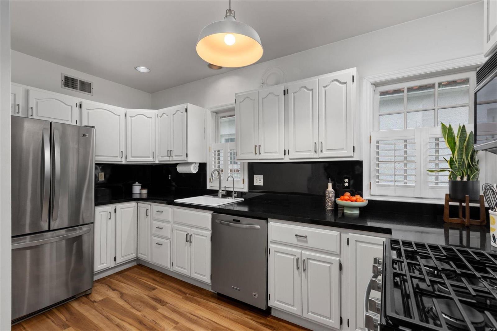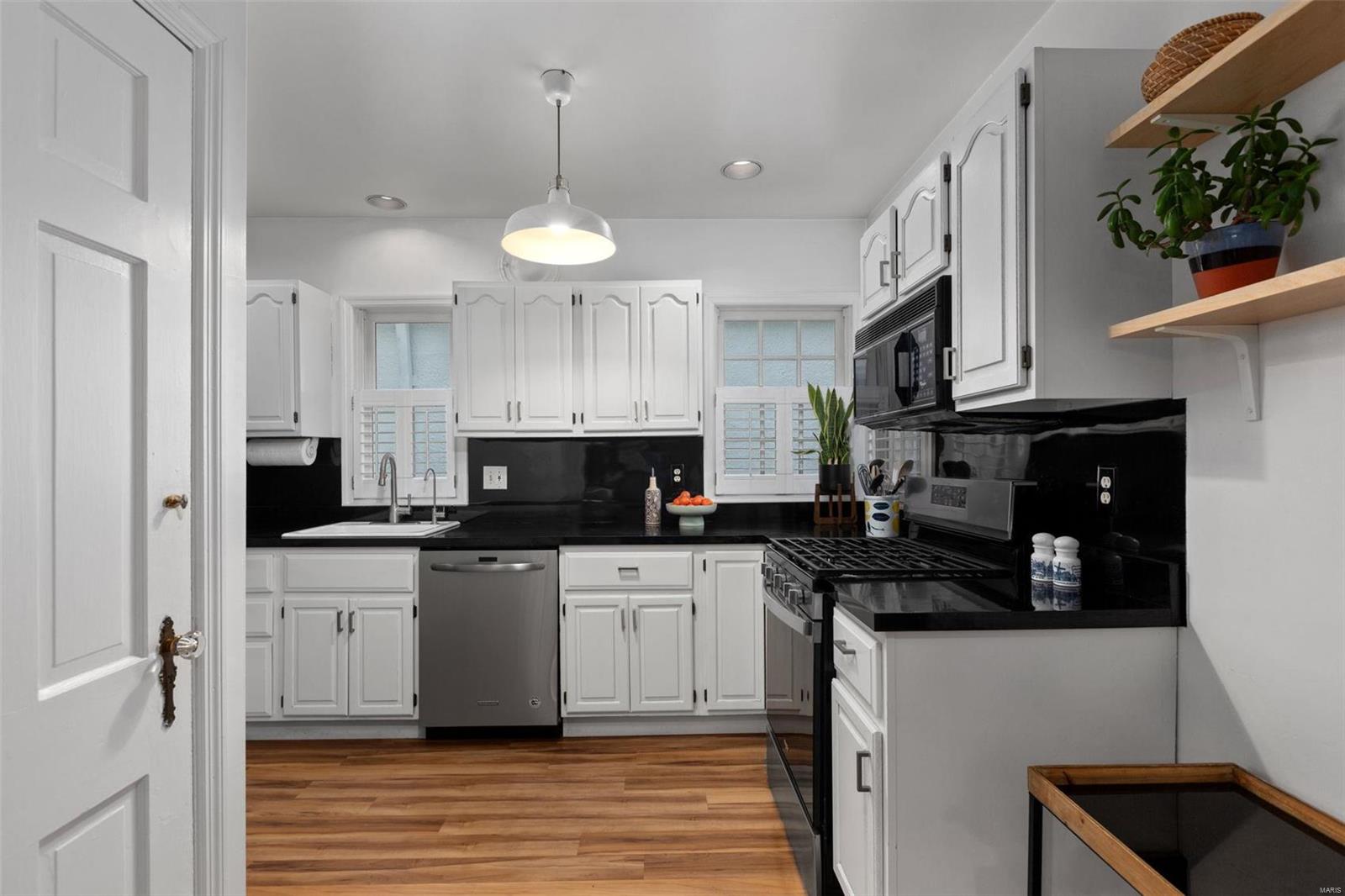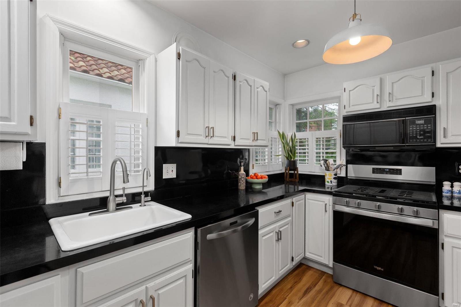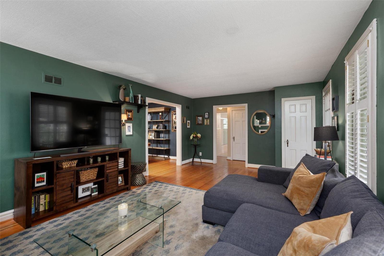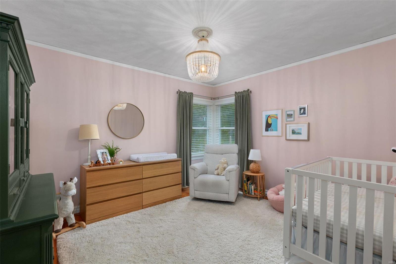 You had me at hello! This gorgeous U city bungalow charms with its white painted brick, stunning bay window & inviting covered porch. An abundance of natural light pours in to the entry from the recently finished sunroom. Hardwood floors throughout. Lovely living room w/ handsome gas fireplace, separate dining room, bright kitchen with corner windows and SS appliances. Primary bedroom includes a custom closet. Full bathroom w/ white tile offers ample storage. Generous 2nd bedroom. Pretty sunroom w/southern exposure looks onto the picturesque backyard complete w/new fencing and landscaping . Partially finished lower level w/ walk out includes a half bath w/ space for a shower, Laundry, rec space and additional storage. Tuck-under one-car garage has been converted to shed storage. Ample space to build add'l parking structure. New Roof (2024).