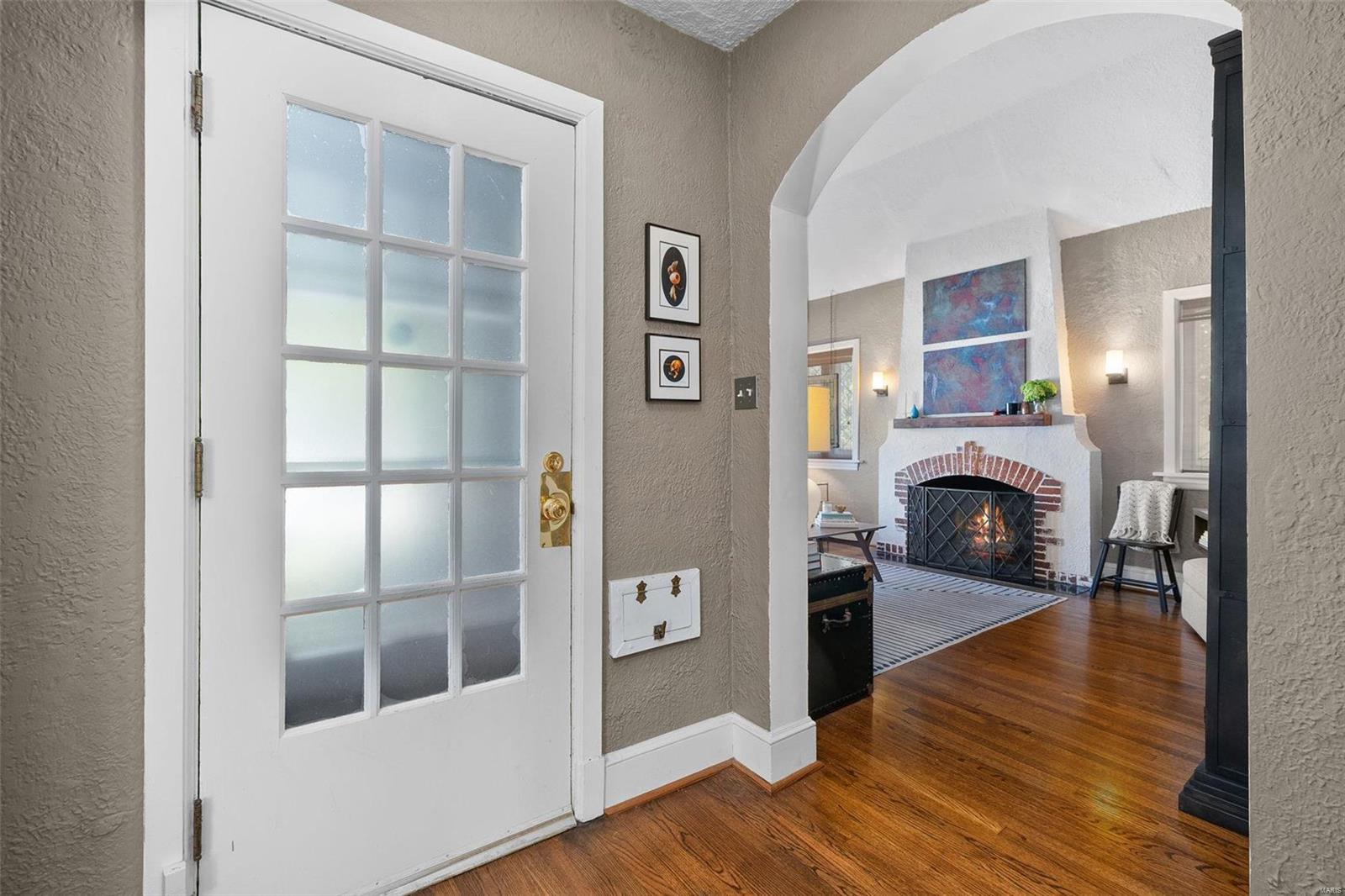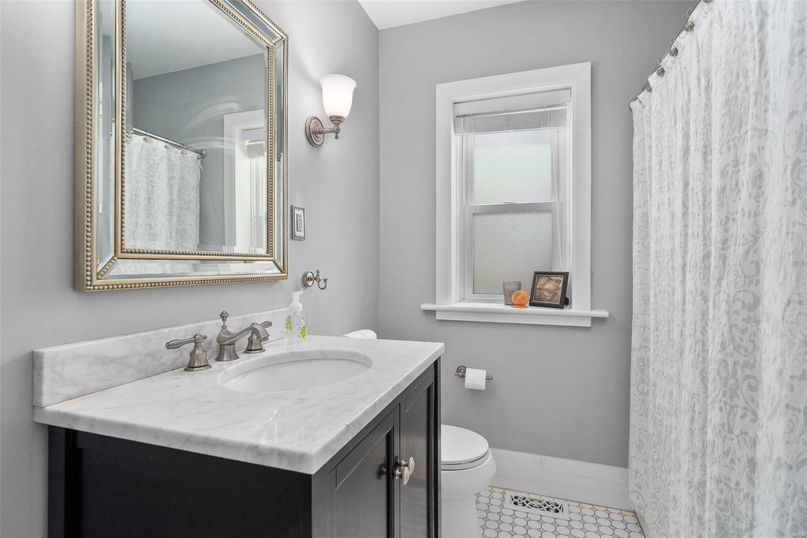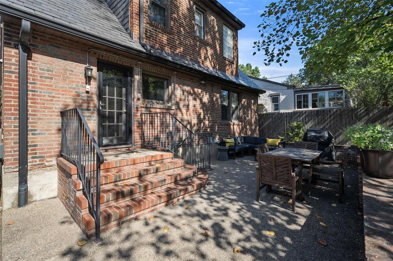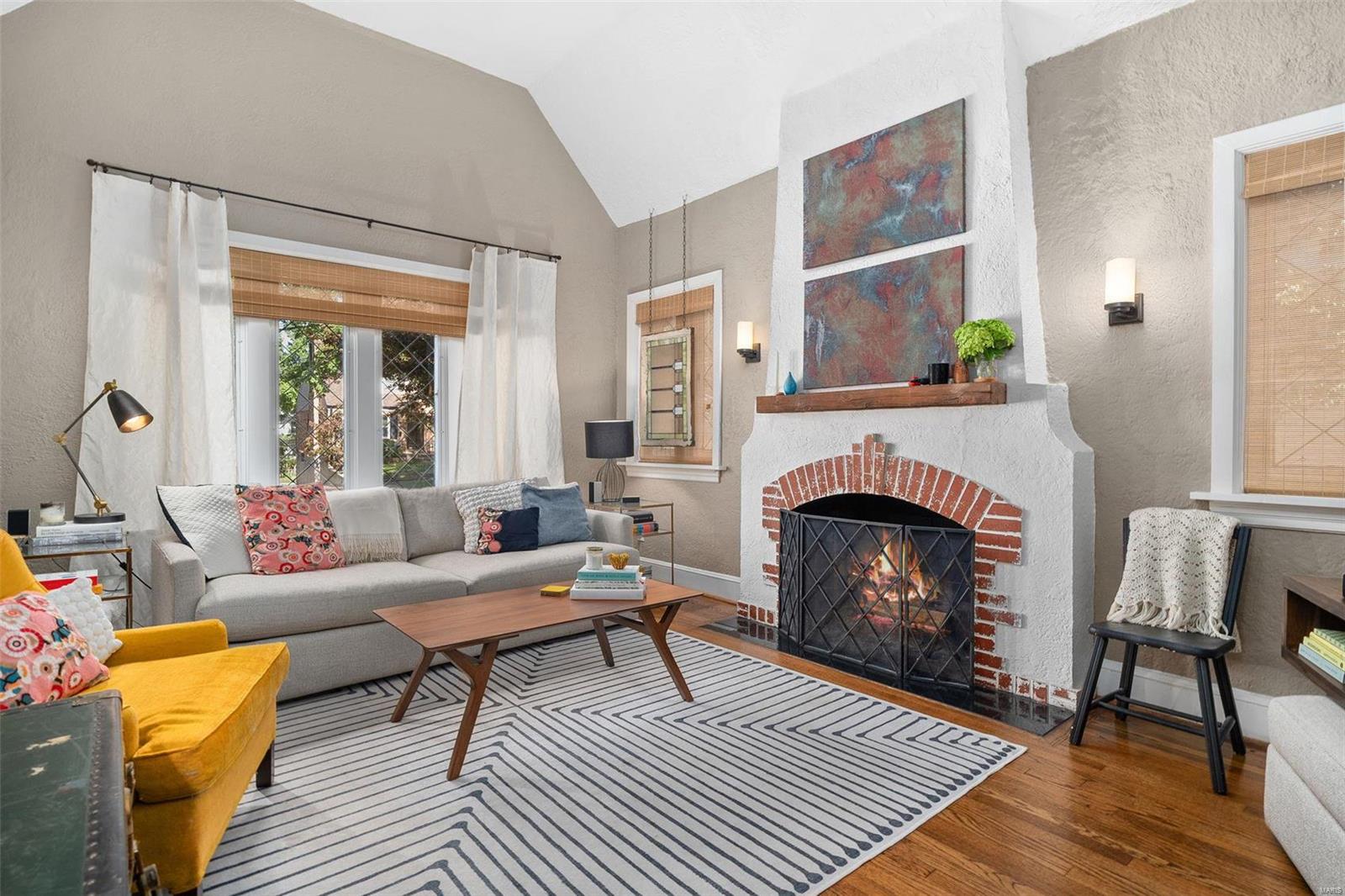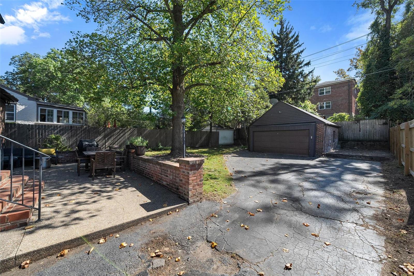 Stunning all brick, 3 bed 2 full bath in fabulous U City location, just a few blocks from Clayton. This charming Tudor offers timeless architectural elements in a modern, flexible layout. Inviting front patio & covered porch lead to lovely foyer. Dramatic, vaulted living room w/ handsome woodburning fireplace. Separate dining room with stained and leaded glass windows. Open kitchen w breakfast bar includes Carrara marble backsplash, SS appliances, ample cabinet storage. Current office, formerly a main floor bedroom, could also function as a family room. Full bath with shower/tub combo complete 1st floor. Both upper level bedrooms includes 2 closets. Full bath includes a generous walk in shower. Full basement with walkout includes a finished laundry area & additional rec space. Lovely aggregate patio, level backyard. Detached 2 car garage. Newer slate roof (less than 20 yrs), drain tile & sump pump, all new sewer lateral, fencing, kitchen appliances.