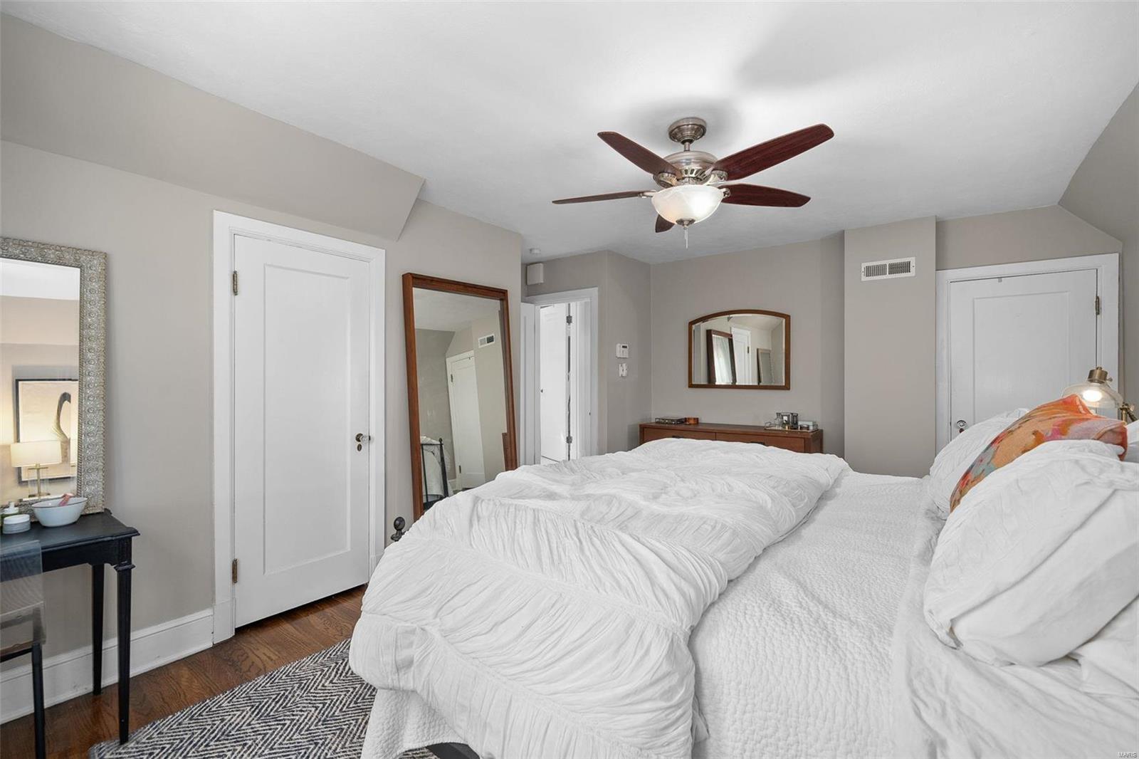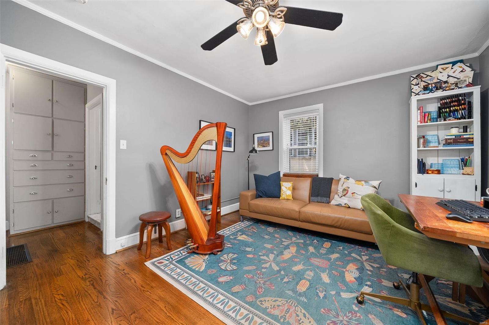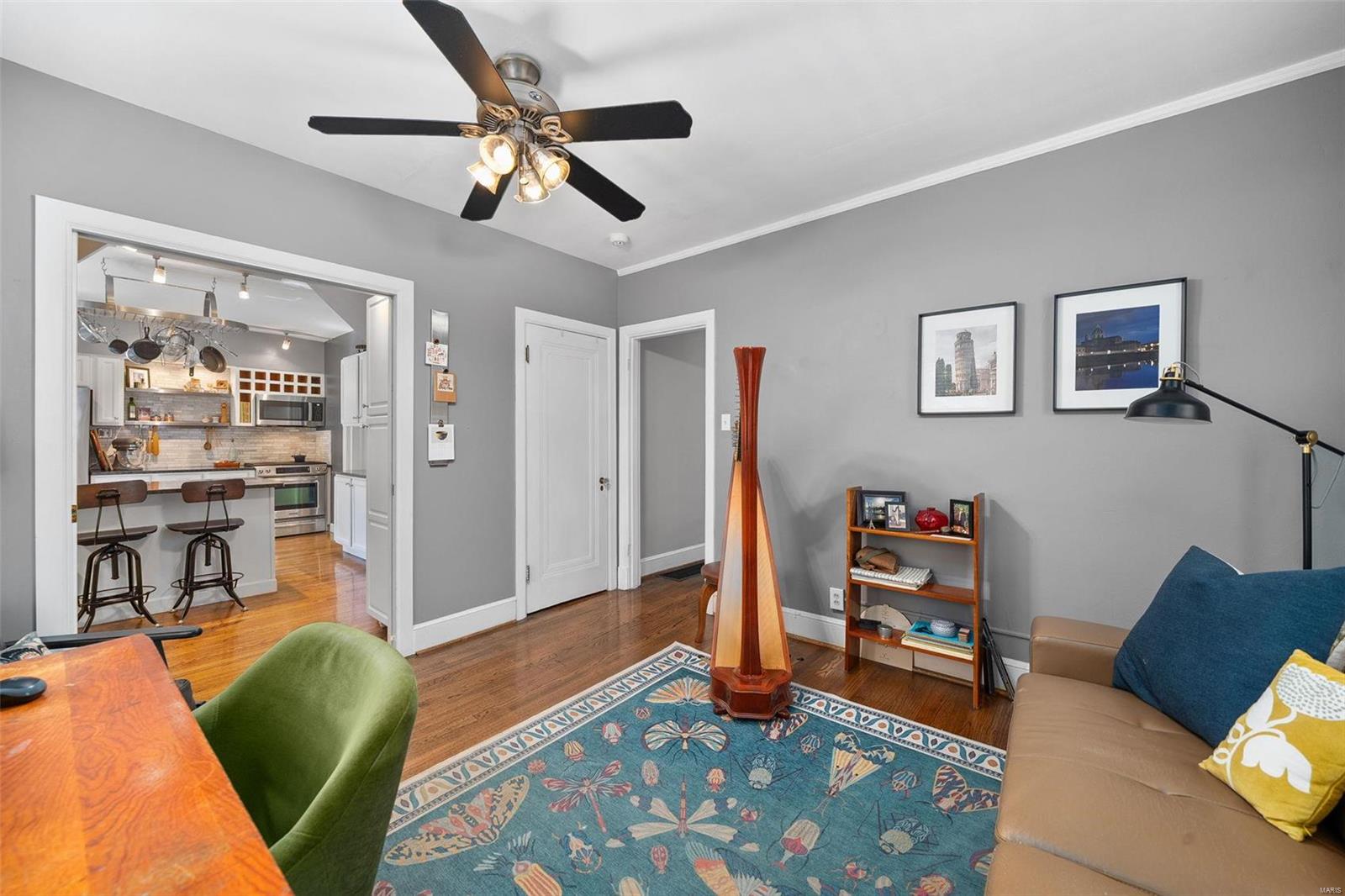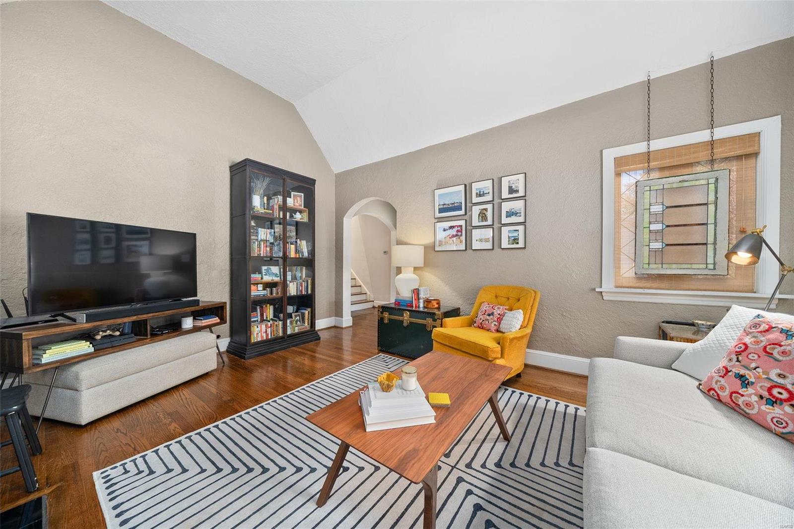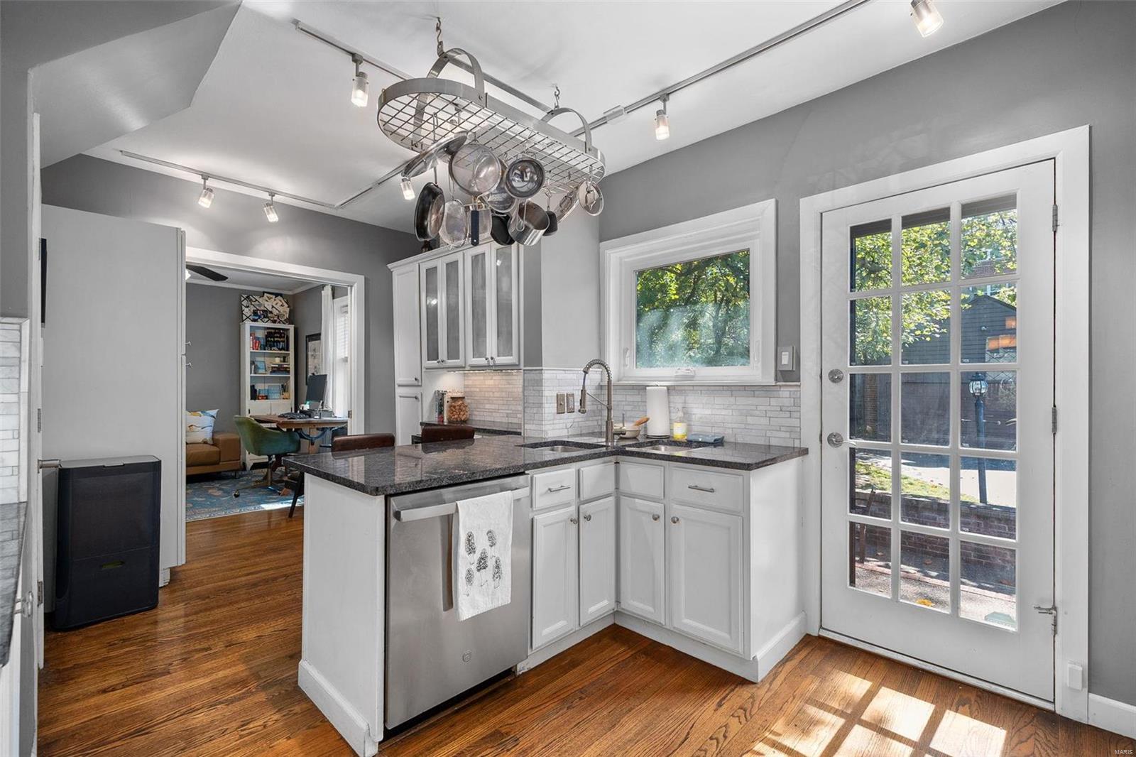 Stunning all brick, 3 bed 2 full bath in fabulous U City location, just a few blocks from Clayton. This charming Tudor offers timeless architectural elements in a modern, flexible layout. Inviting front patio & covered porch lead to lovely foyer. Dramatic, vaulted living room w/ handsome woodburning fireplace. Separate dining room with stained and leaded glass windows. Open kitchen w breakfast bar includes Carrara marble backsplash, SS appliances, ample cabinet storage. Current office, formerly a main floor bedroom, could also function as a family room. Full bath with shower/tub combo complete 1st floor. Both upper level bedrooms includes 2 closets. Full bath includes a generous walk in shower. Full basement with walkout includes a finished laundry area & additional rec space. Lovely aggregate patio, level backyard. Detached 2 car garage. Newer slate roof (less than 20 yrs), drain tile & sump pump, all new sewer lateral, fencing, kitchen appliances.