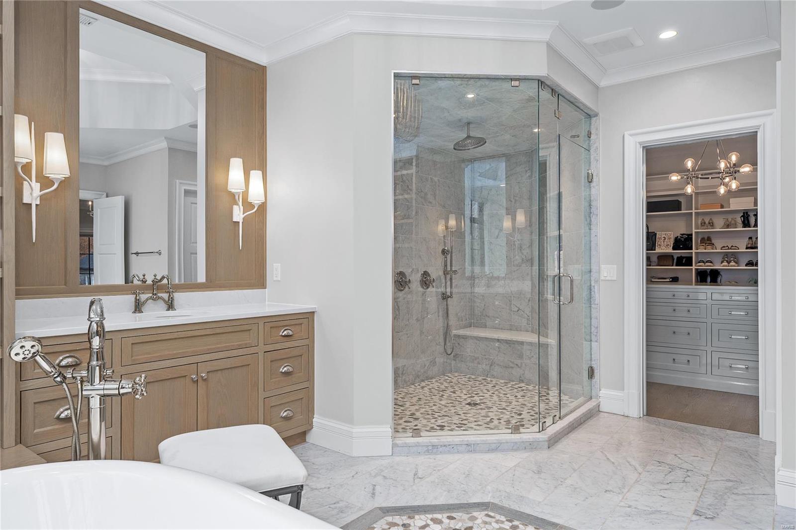 Stunning all brick home w/ slate roof, Pella windows & doors, and copper gutters. Stunning moldings, trim, & white oak flooring throughout. Large open foyer opens to den/office with a Juliet balcony. Formal dining room features a box beam ceiling & leads to the butlers pantry w/ custom inset cabinetry throughout and walk in pantry. The well-appointed eat-in kitchen includes a wolf range, 2 30" subzero units. FR includes fireplace and built ins. 2nd level includes the primary suite- complete with spa-like bath and oversized WIC w/ center island. 3 add/l bedrooms (1 en suite and 2 with JNJ bathroom) and full laundry. LL includes mudroom, half bath and 700 ft of living space. Fabulous covered patio leads to the heated Pebbletec pool. Aggregate driveway. Professionally landscaped yard w full irrigation.
