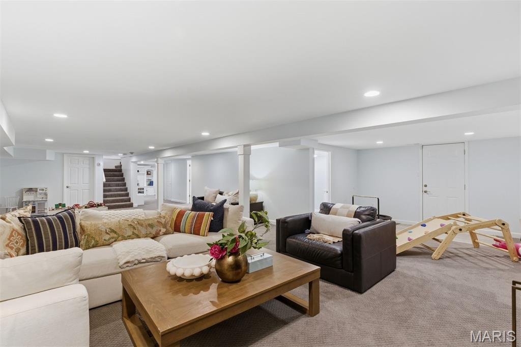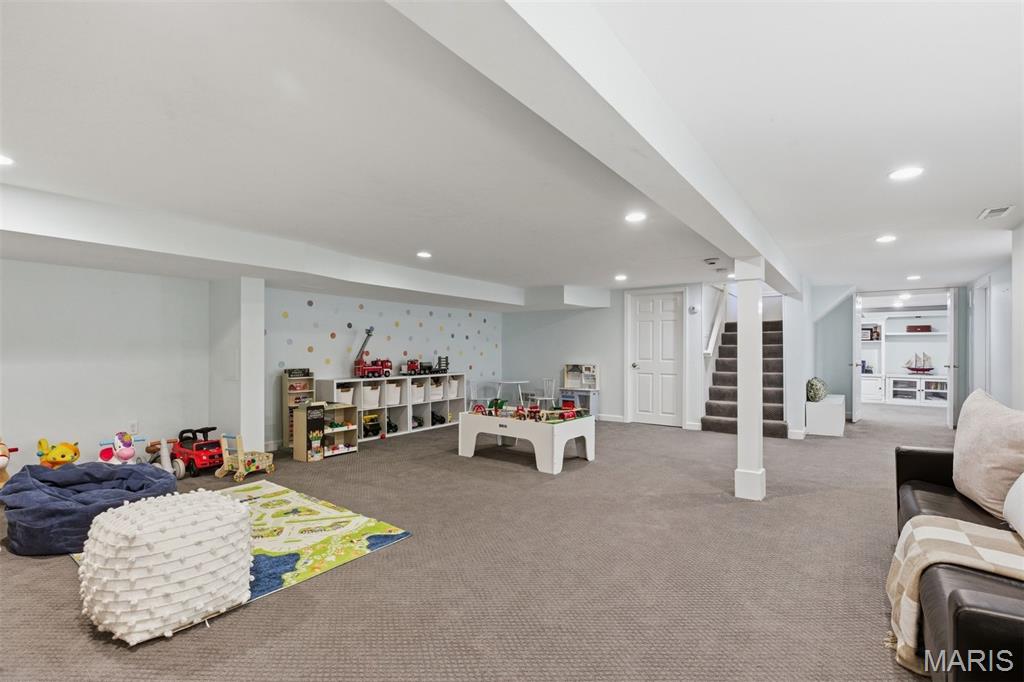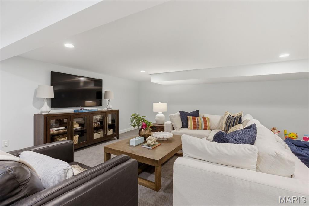 The finished lower level adds impressive additional living space, offering a large recreation area ideal for movie nights, gatherings, or play, along with a full bath and ample storage.